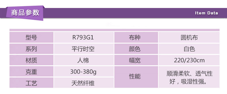圆机布 > 天然纤维 > 人棉 > R793-1(旧R793G1)圆机布 天然纤维 人棉 白色