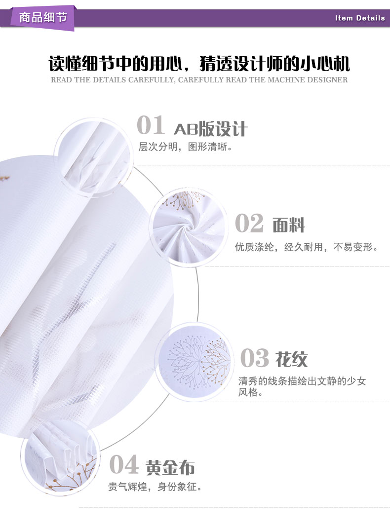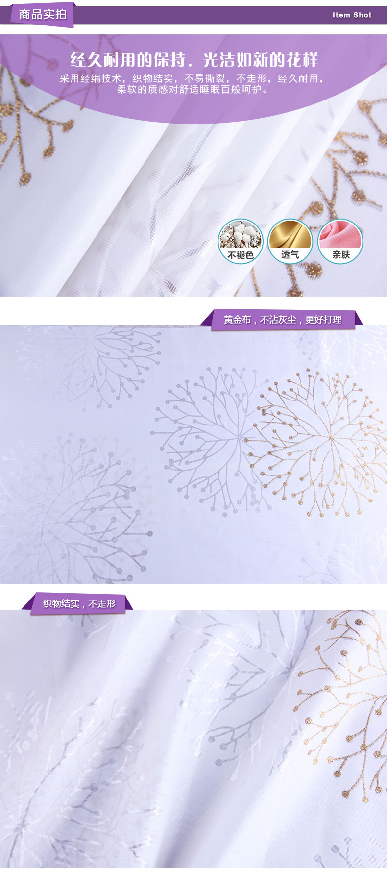 商品描述: 优质黄金布,柔软舒适,印金工艺,贵气质感;柔情少女的深闺住宅