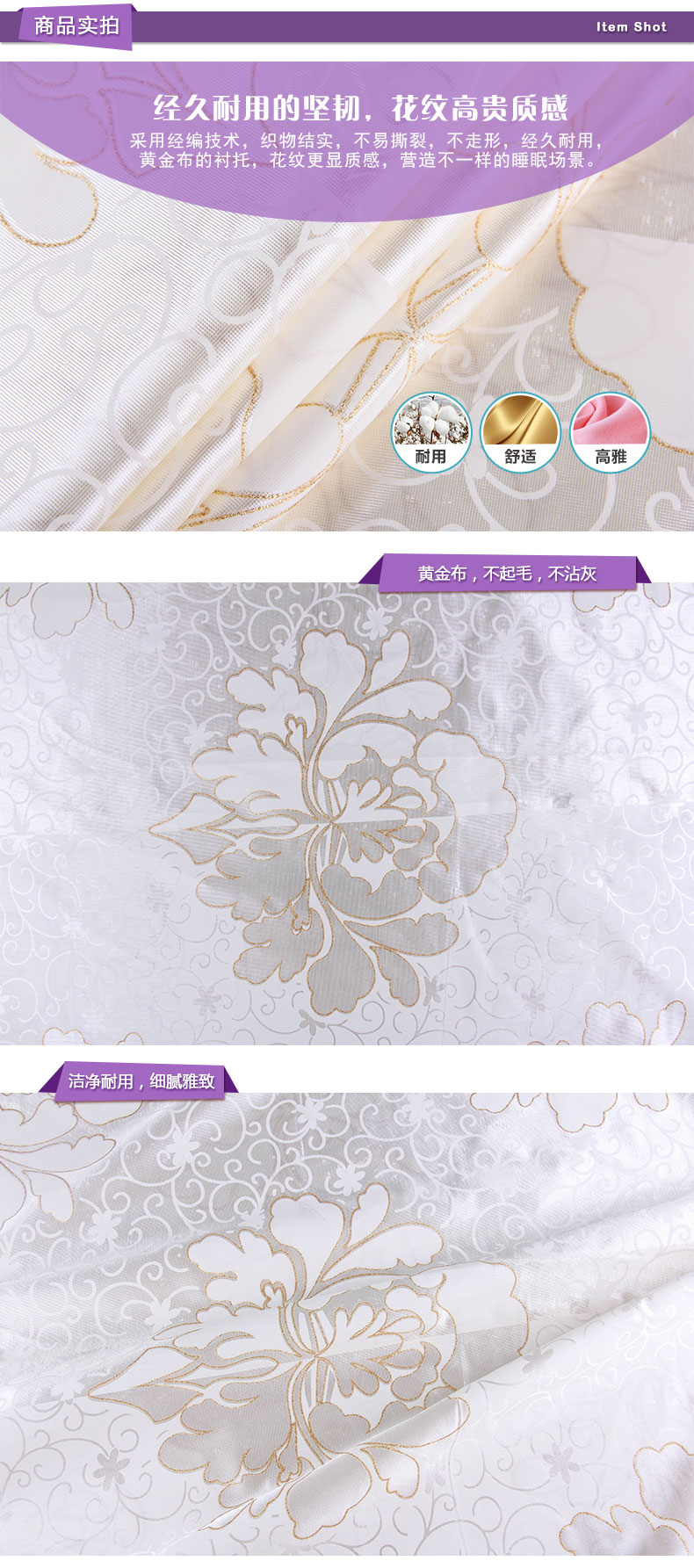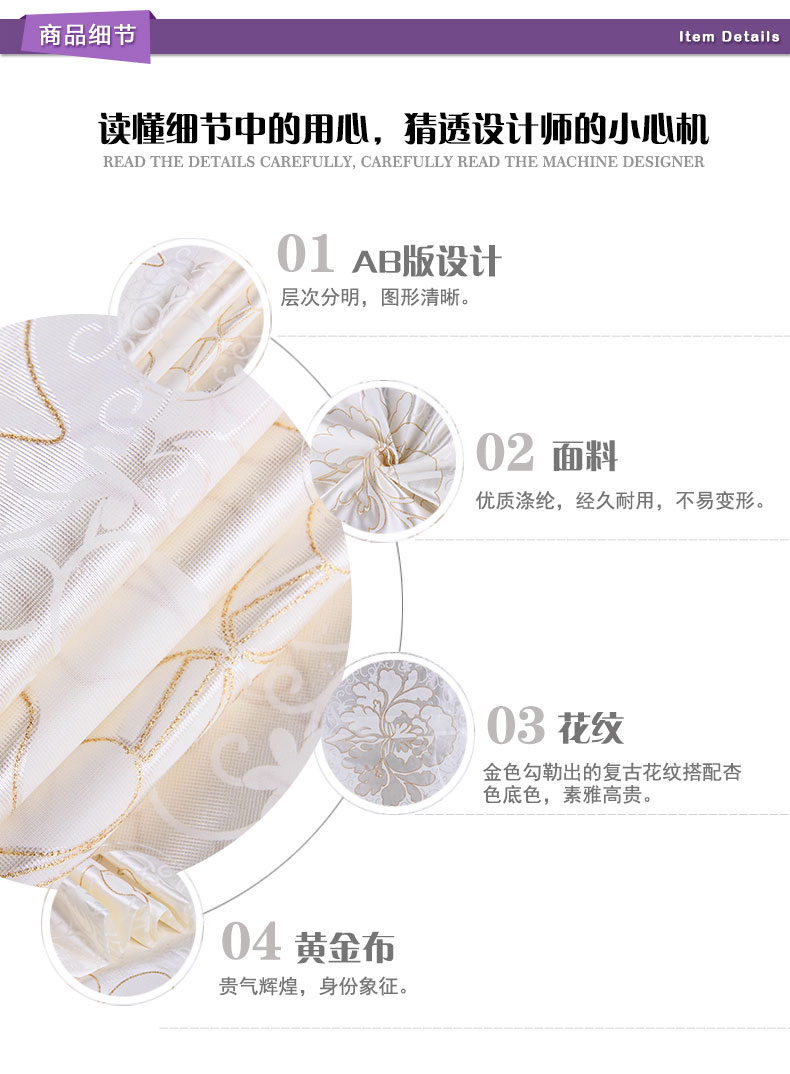 商品描述: 优质黄金布,耐热耐磨,弹性好;绽放的花朵,在小花与枝芽的衬托下更显美艳