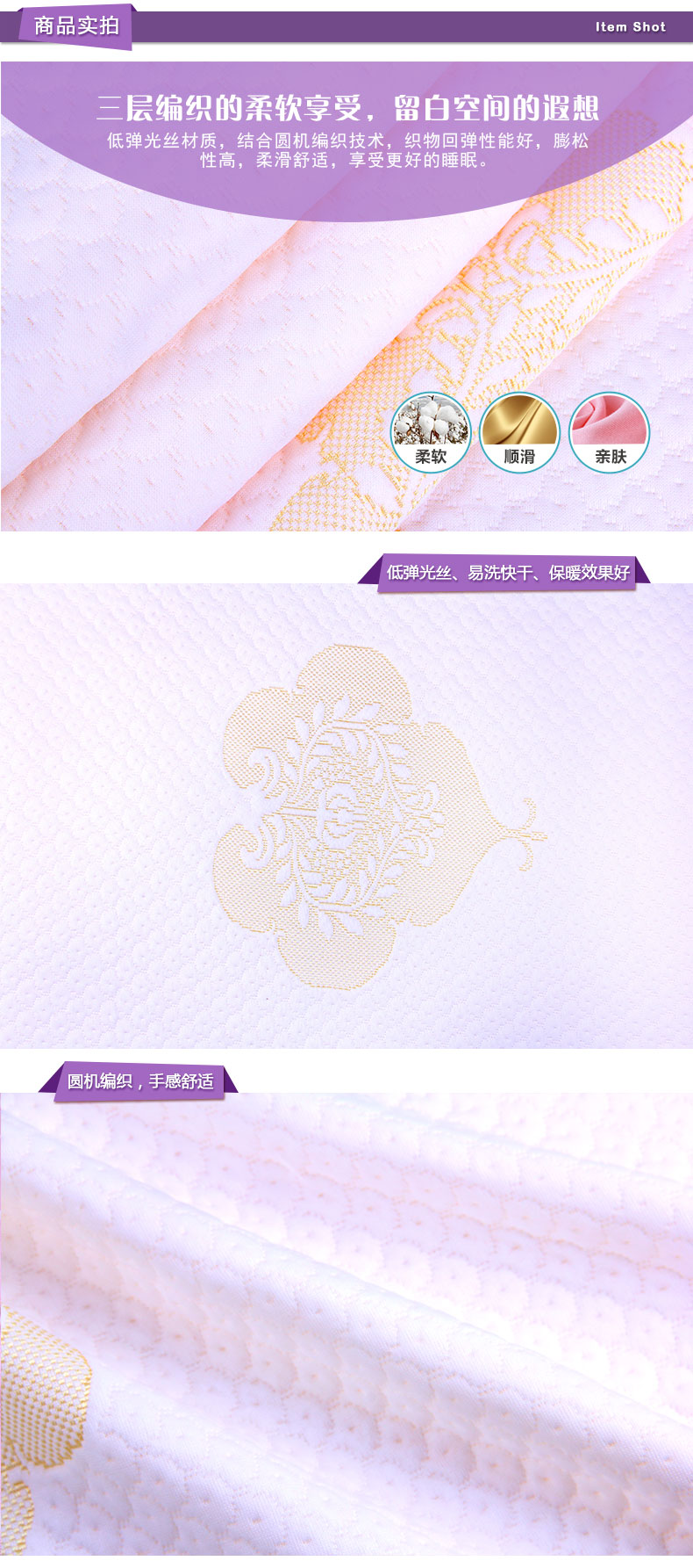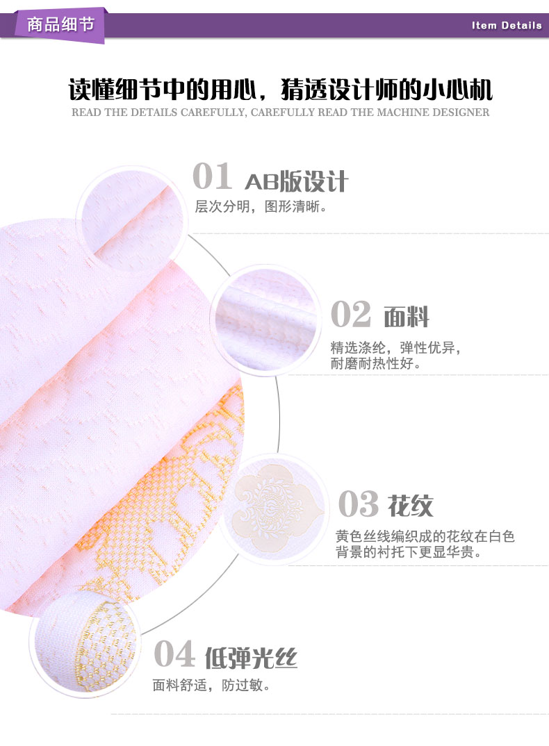 商品描述: 低弹光丝材质,手感更柔滑;华丽的花纹,更显贵族的气质,编造贵族享受的美梦。