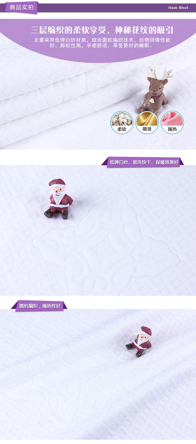 商品描述: 低弹白纱材质,手感更舒适;夜空中点缀着许多小钻石,一闪一闪,美丽耀眼。