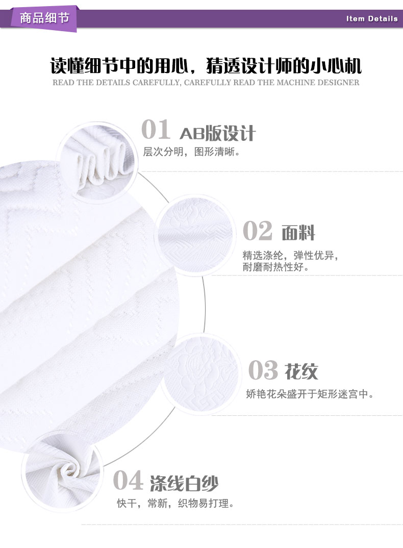 商品描述: 涤线白纱,柔软舒适,洁净易打理;漫步在迷失方向的花园里,享受就好