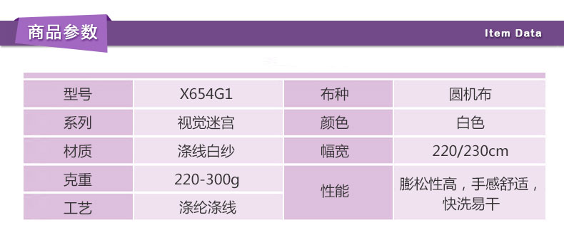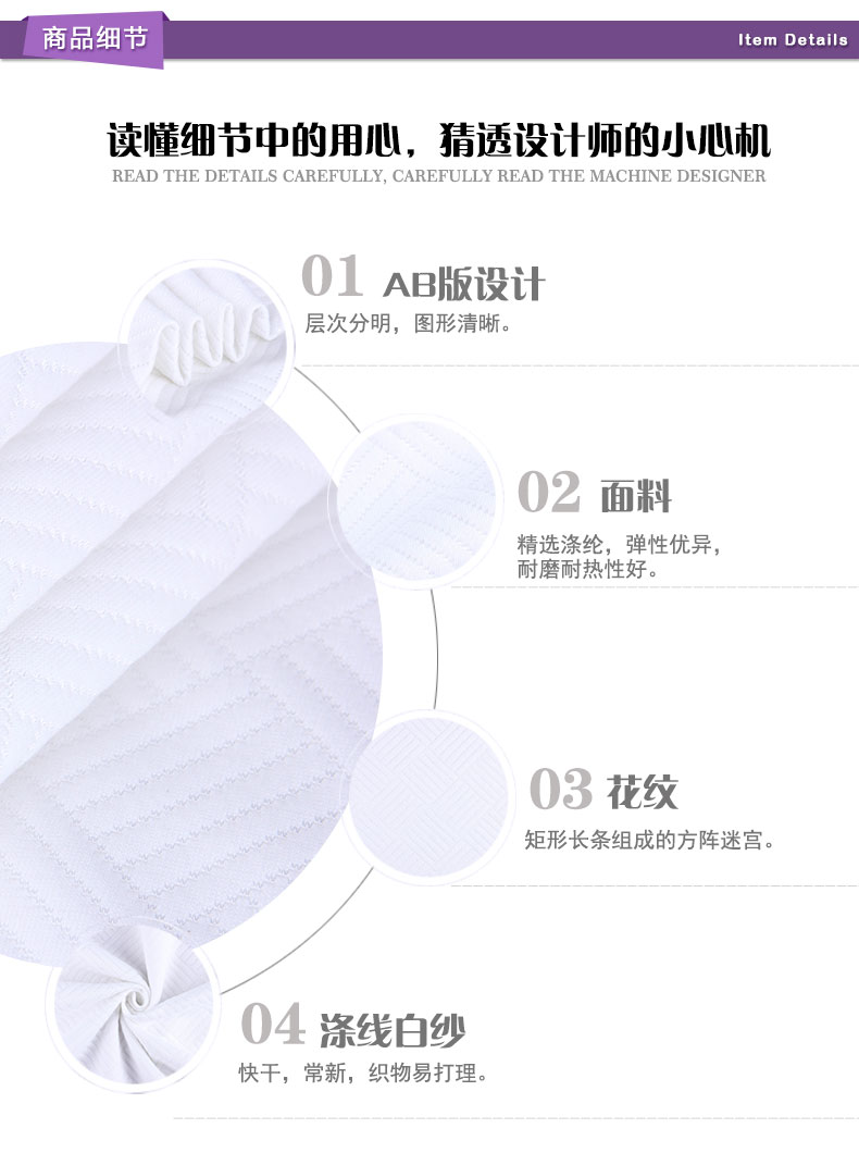 商品描述: 涤线白纱,柔软舒适,洁净易打理;人生就是发现细微之处,找到正确出路