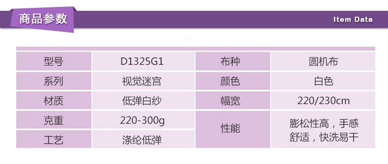 涤纶低弹 > 低弹白纱 > 白纱 > A1325-1(旧D1325G1)圆机布 涤纶低弹 低弹白纱 白色