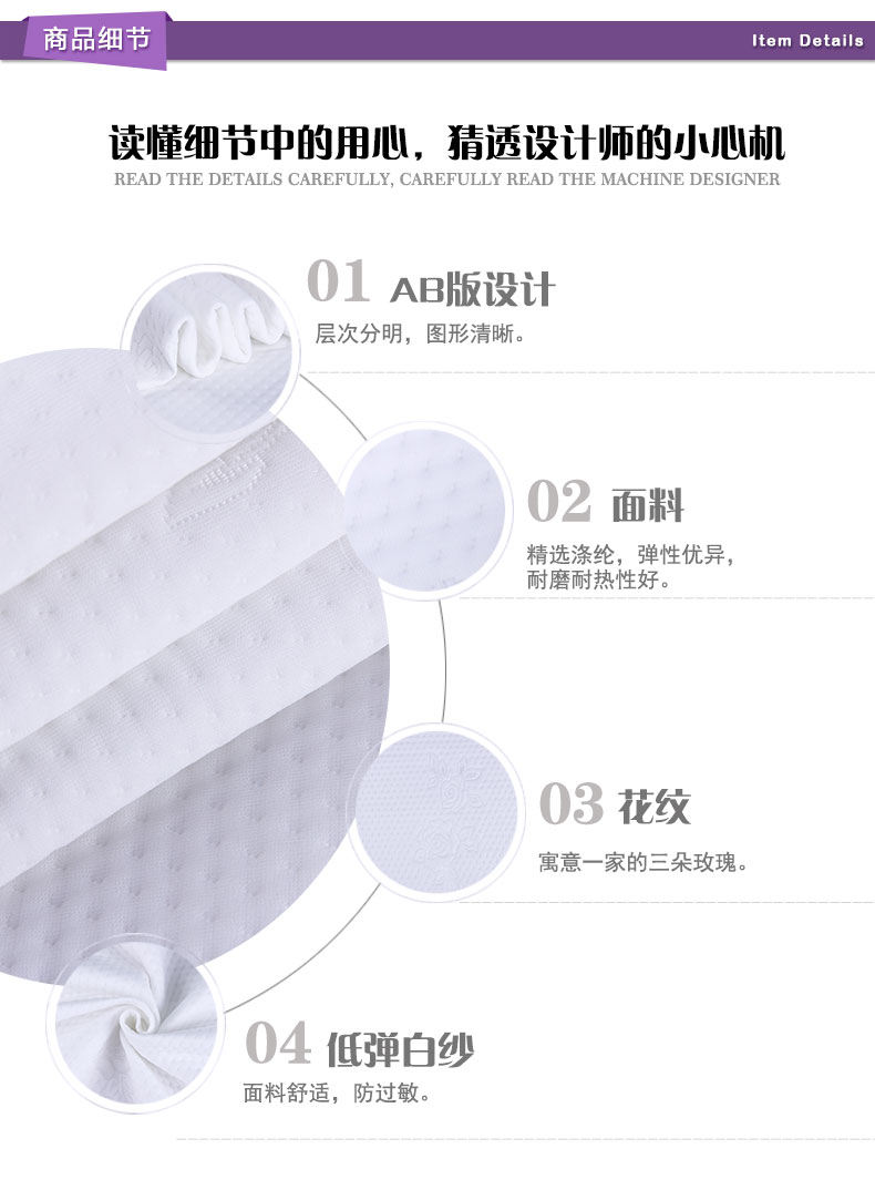 商品描述: 低弹白纱材质,手感更舒适;温馨一家缺一不可