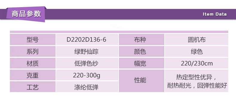 涤纶低弹 > 低弹色纱 > 色纱 > B2202-2(旧D2202D136-6)圆机布 涤纶低弹 低弹色纱 绿色