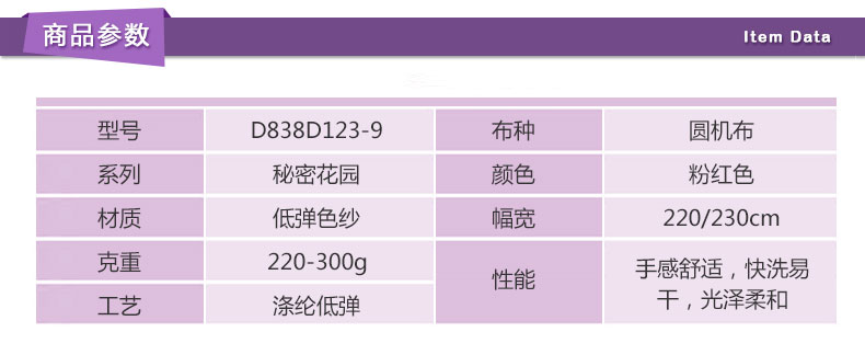 涤纶低弹 > 低弹色纱 > 色纱 > B838-1(旧D838D123-9)圆机布 涤纶低弹 低弹色纱 粉红色