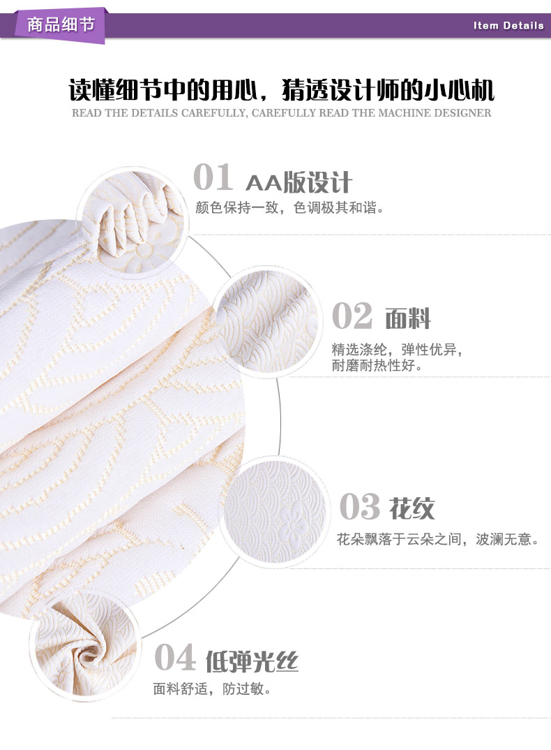 商品描述: 低弹光丝材质,手感更柔滑,闲看庭前花开花落,漫观天外云展云舒