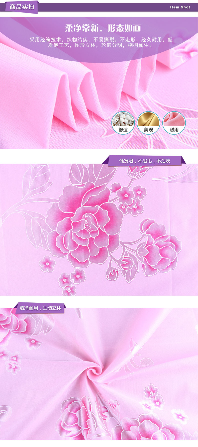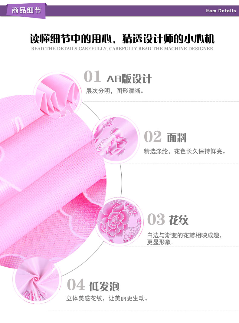商品描述: 发泡工艺,立体花纹;淡粉立体的复古花纹,让人仿佛身处花园之中