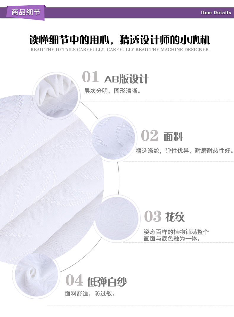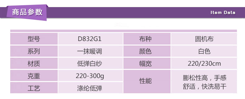 商品描述: 低弹白纱材质,手感更舒适;沉浸纯色的世界,享受纯净的感觉