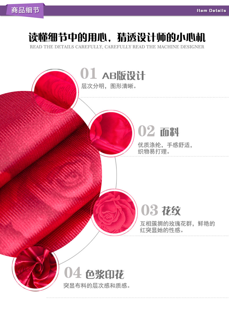 商品描述: 色浆印花,质感突出,层次分明;狂野性感的玫瑰丛林