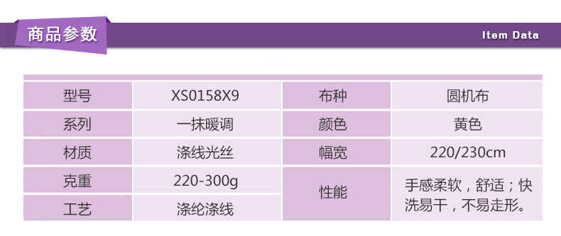 D158-5(旧XS0158X9)圆机布 涤纶涤线 涤线光丝 黄色