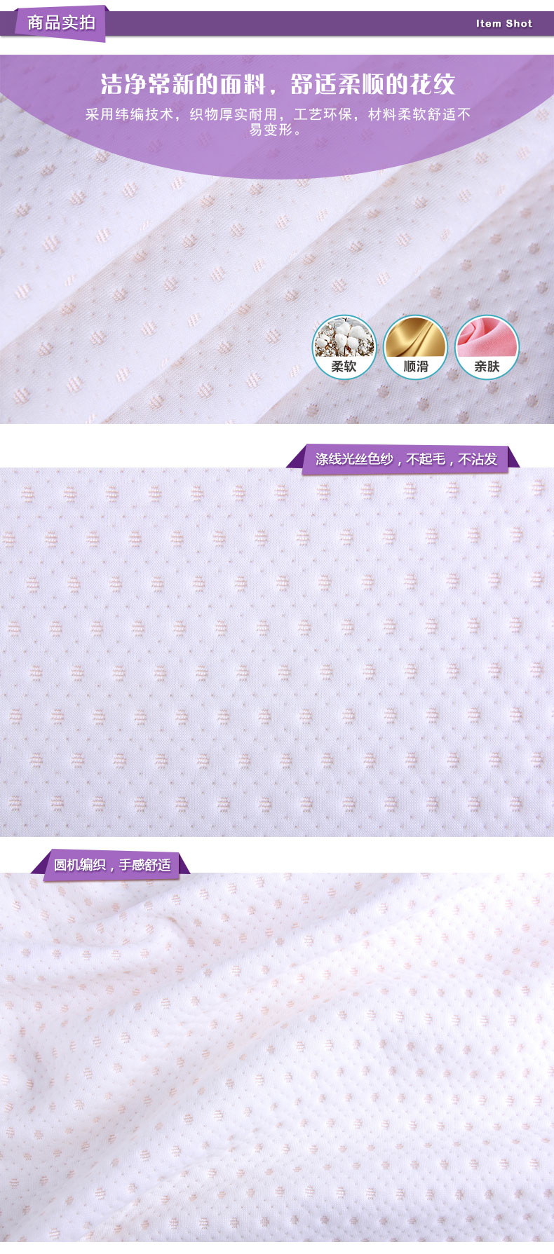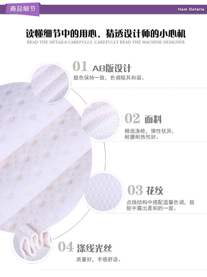 商品描述: 涤线光丝材质,柔软舒适,洁净易打理;杏色波点点缀在一片纯白柔软的世界里