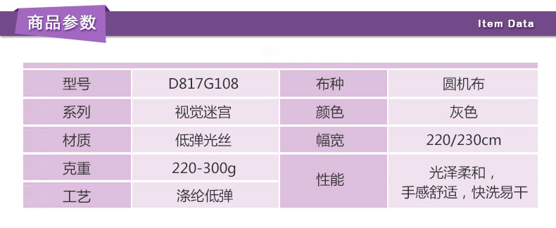 涤纶低弹 > 低弹光丝 > 光丝色纱 > B817-1(旧D817G108)圆机布 涤纶低弹 低弹光丝 灰色