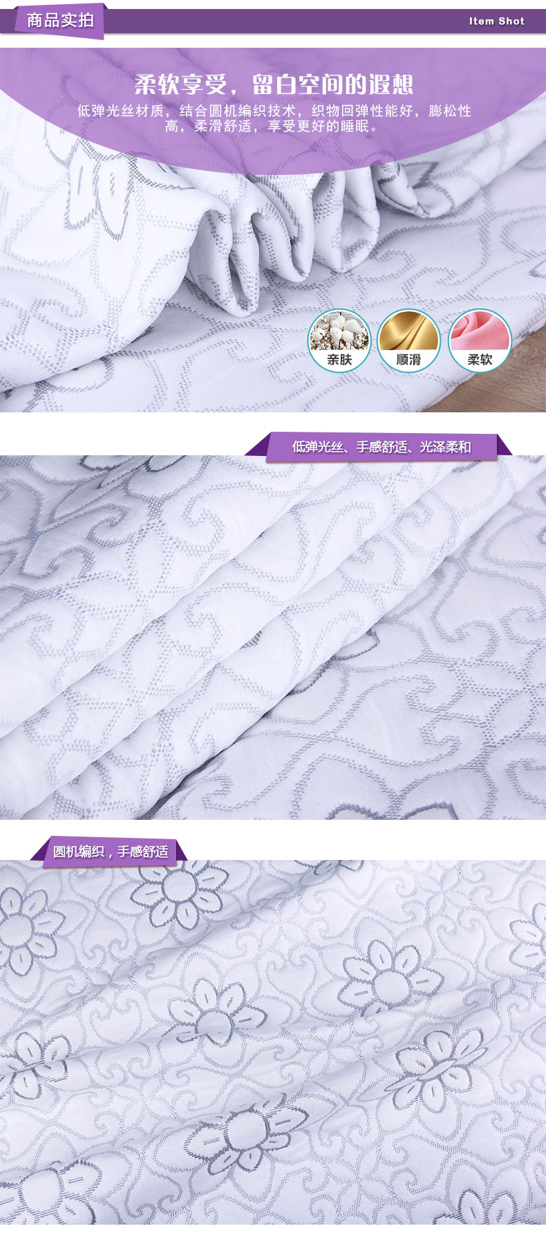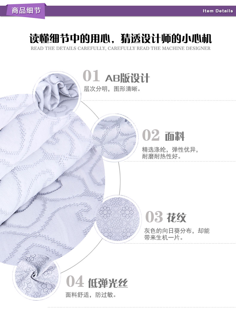 商品描述: 低弹光丝材质,手感更柔滑,灰色的向日葵勾勒,花园充满生机勃勃。