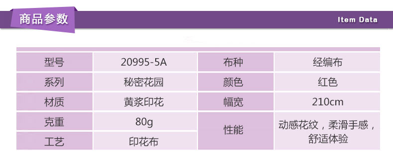 20995-5A 经编布 印花布 色浆印花 红色