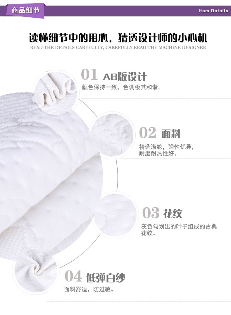 商品描述: 低弹白纱材质,手感更舒适;纯白叶子构图,雅致整洁有个性。