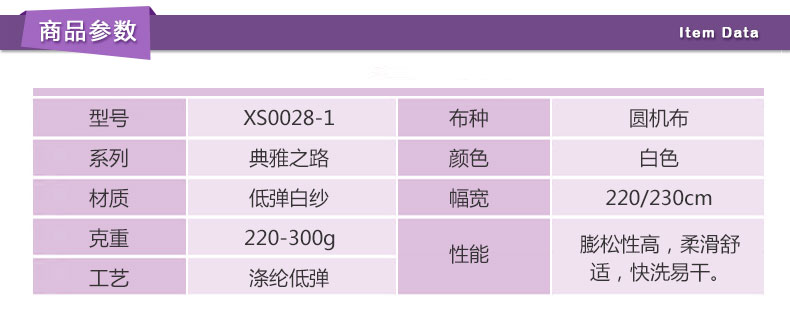 涤纶低弹 > 低弹白纱 > 白纱 > A28-1(旧XS0028-1)圆机布 涤纶低弹 低弹白纱 白色