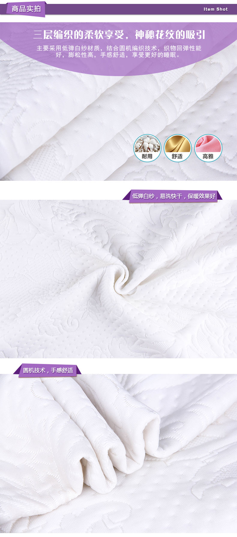 • 材质:低弹白纱