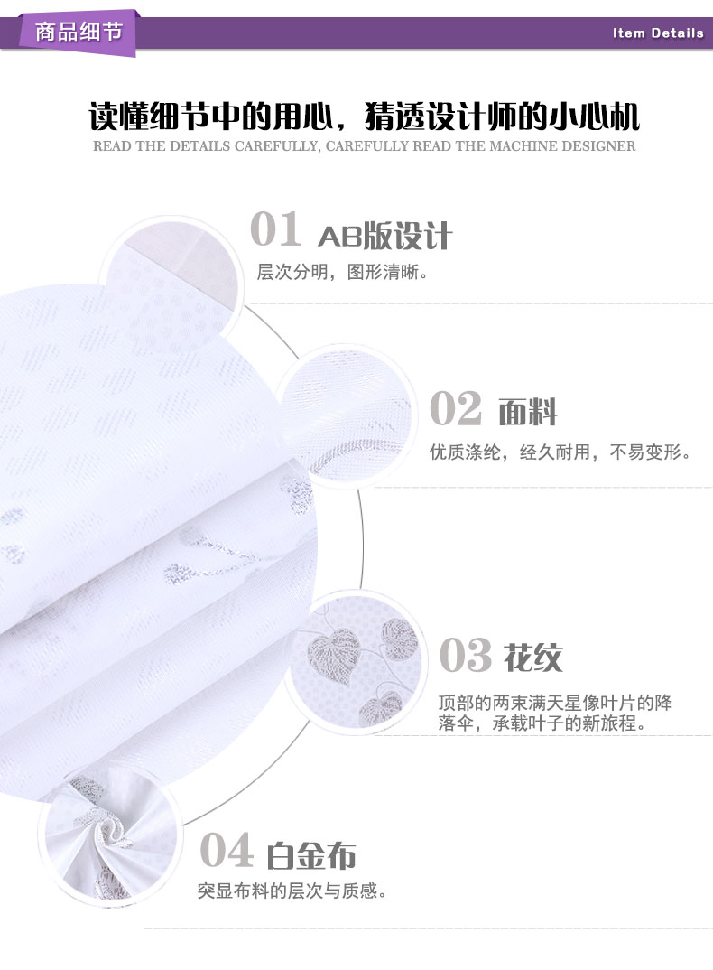 商品描述: 精选白金布,柔软舒适,洁净易打理;漫天飞舞的旅途,总有的时刻落叶归根