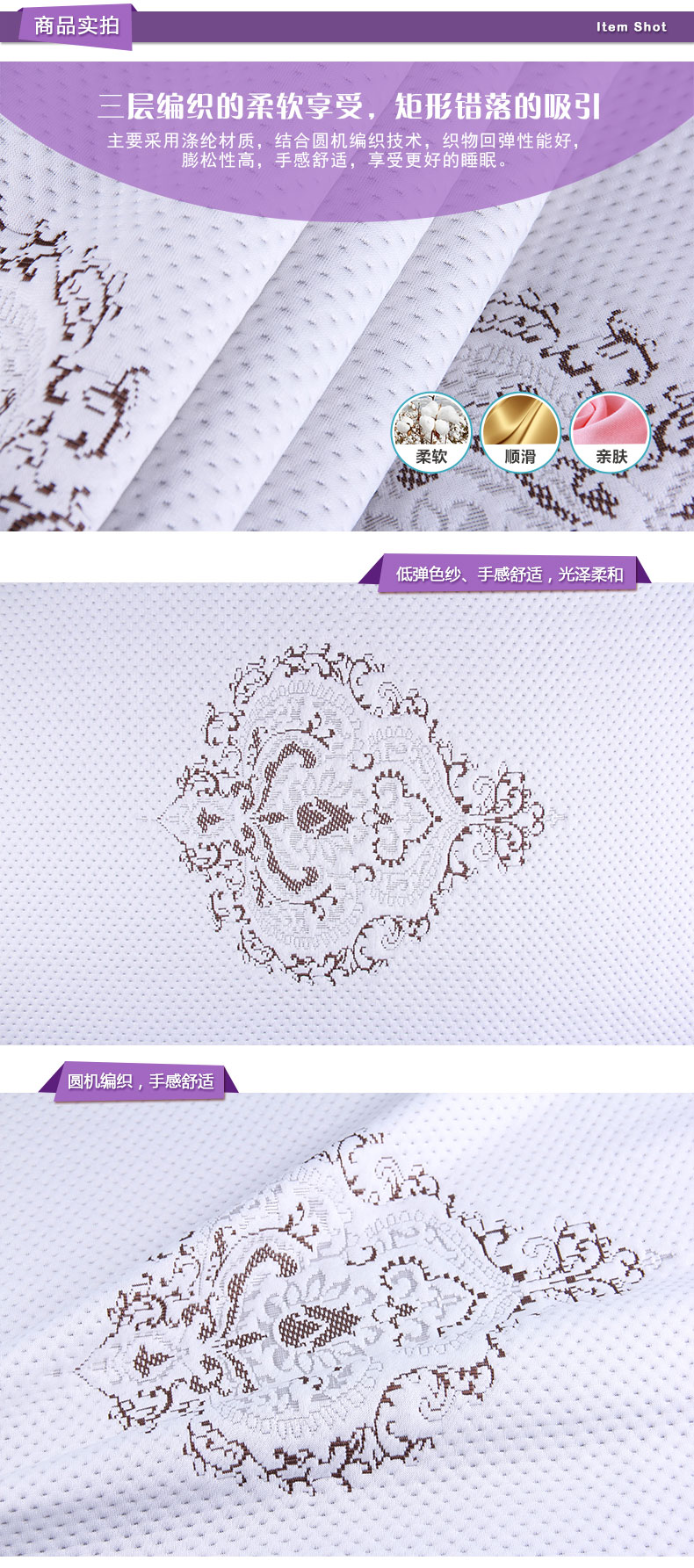 商品描述: 低弹色纱材质,手感舒适;皇室的象征,尊贵唯一