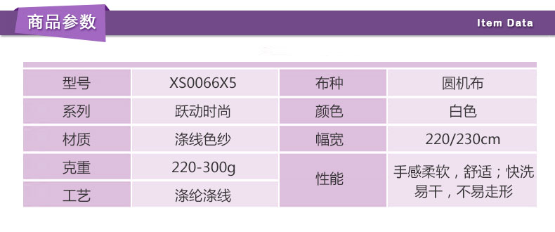 D66-1(旧XS0066X5) 圆机布 涤纶涤线 涤线色纱 白色