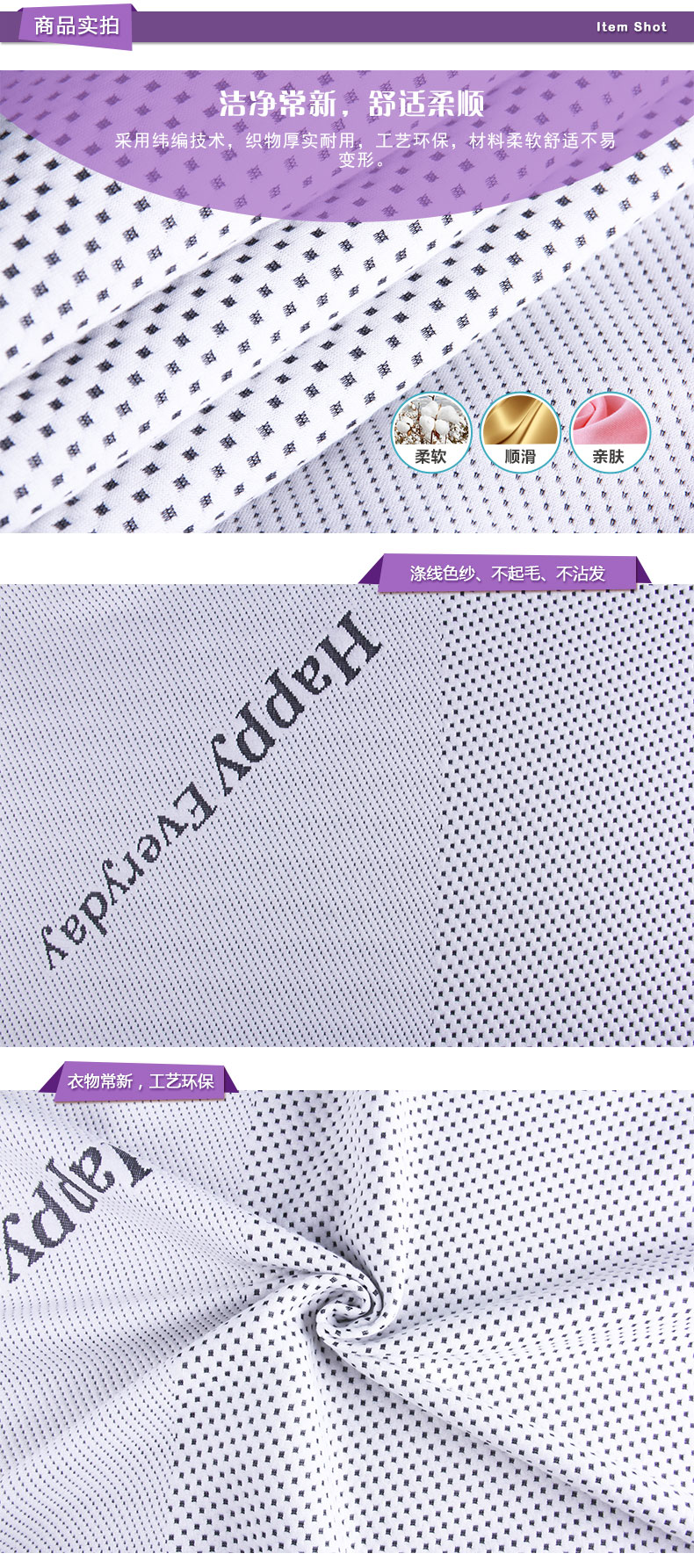商品描述: 涤线色纱材质,柔软舒适,洁净易打理; 人这一生,装的快乐多了,烦恼就少了