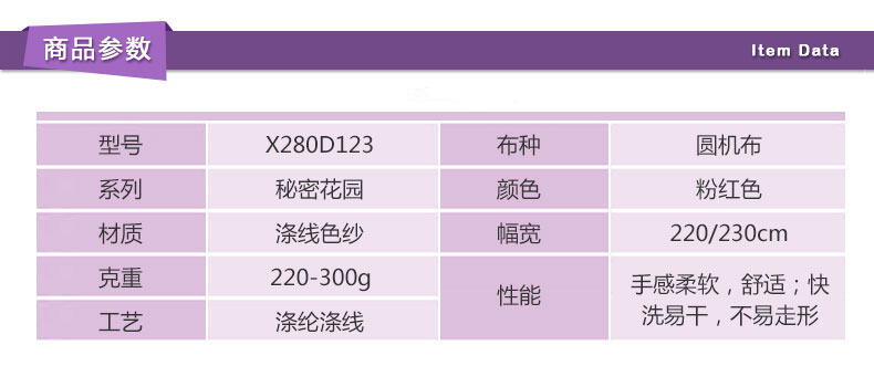 • 产品名称:秘密花园 X280D123
