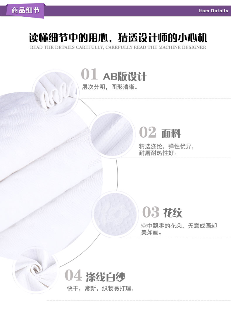 商品描述: 涤线白纱,柔软舒适,洁净易打理;花朵飘零在微风中,简单随性