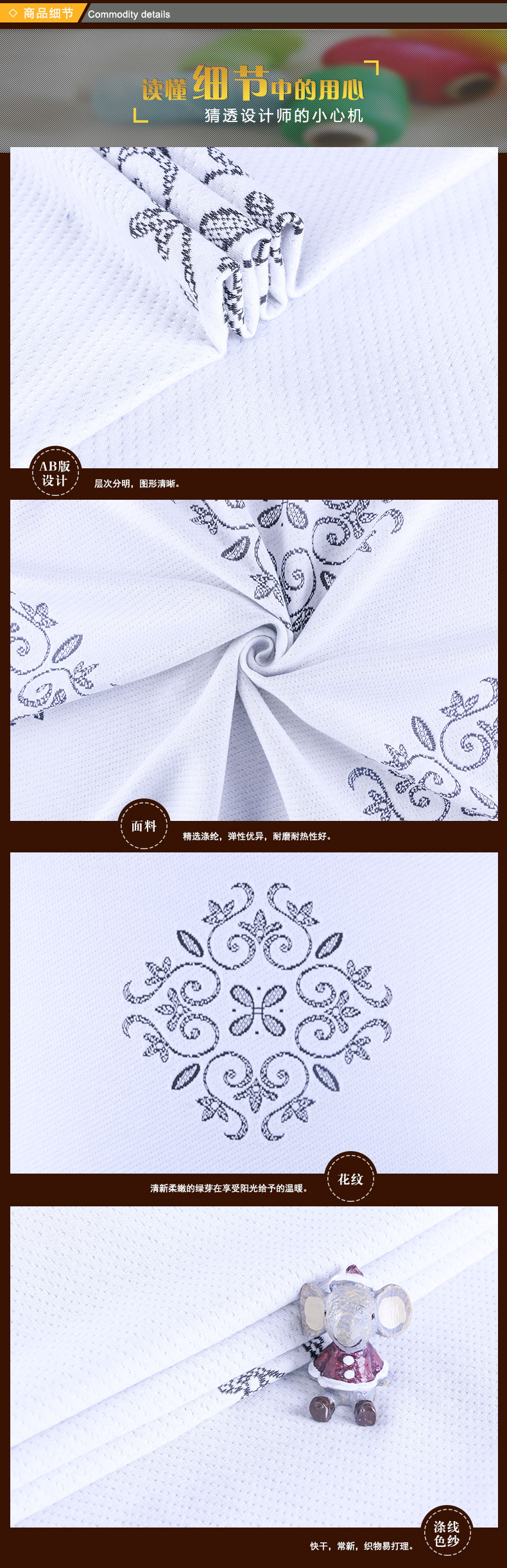 商品描述: 涤线色纱材质,柔软舒适,洁净易打理;嫩芽在俏俏滋长,阳光似乎变得更加暖和了