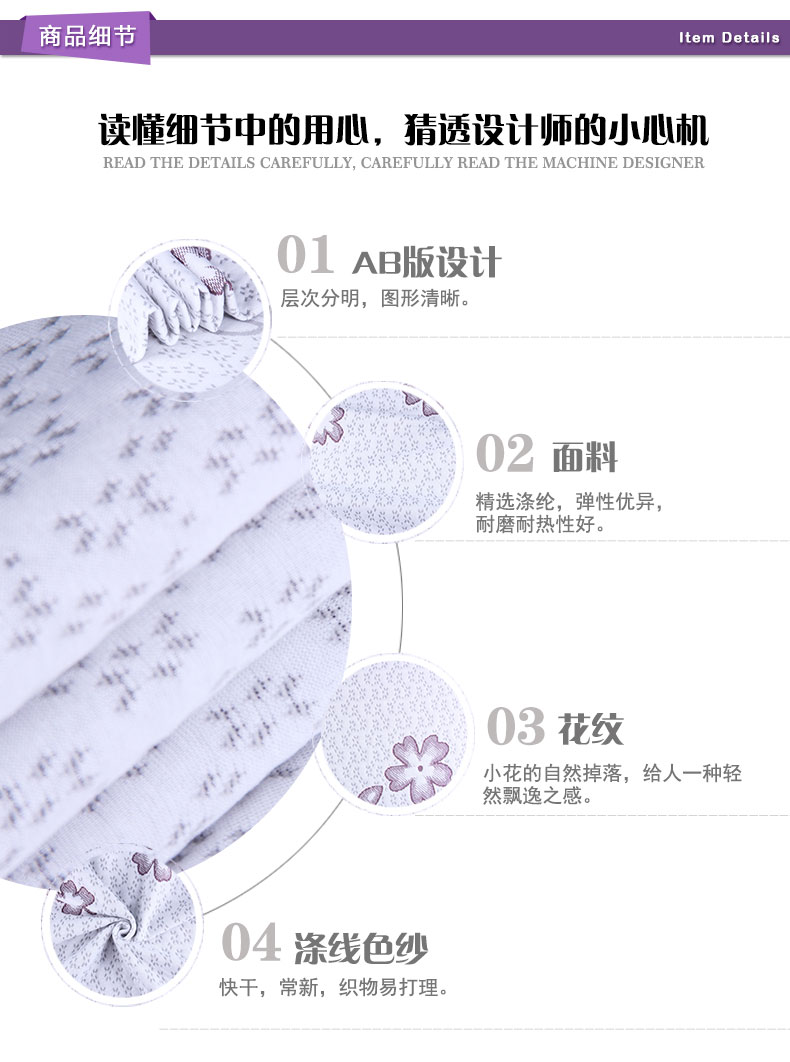 商品描述: 涤线色纱材质,柔软舒适,洁净易打理;小花与线条的组合,一种邻家女孩的温馨暖调体现。