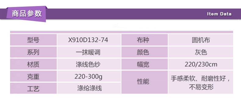 D910-1(旧X910D132-74)圆机布 涤纶涤线 涤线色纱 灰色