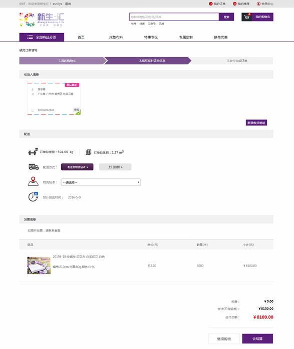 4. 详细填写收货人信息、支付方式、发票信息,核对送货清单等信息,确认无误后点击“提交订单”;(如下图)