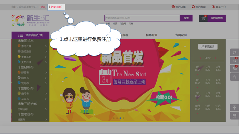步骤一:点击新生汇平台左上角免费注册按钮,进入注册页面(如下图所示)。